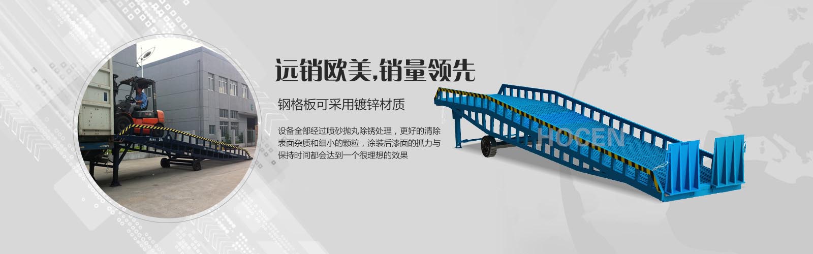 公司長(zhǎng)期致力于鋁合金系列升降平臺(tái)、錳鋼系列液壓升降平臺(tái)和各種登車(chē)橋的研發(fā)生產(chǎn)。經(jīng)過(guò)不懈的研究探索,積累了豐富的設(shè)計(jì)、制造經(jīng)驗(yàn),其中我們也不斷學(xué)習(xí)國(guó)外先進(jìn)技術(shù)和設(shè)計(jì)方案,讓產(chǎn)品在工藝上和外觀(guān)上更精益求精。公司擁有從原材料處理、加工、噴涂的成套制造和檢測(cè)設(shè)備,嚴(yán)格的生產(chǎn)管理、豐富的經(jīng)驗(yàn).....